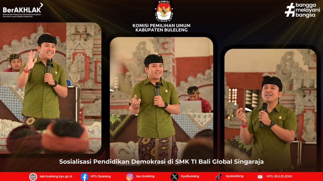 Singaraja, kab-buleleng.kpu.go.id – Komisi Pemilihan Umum (KPU) Kabupaten Buleleng kembali melaksanakan kegiatan Sosialisasi Pendidikan Demokrasi yang kali ini menyasar siswa SMK TI Bali Global Singaraja pada Kamis (9/10/2025). Sebanyak 117 siswa antusias mengikuti kegiatan ini sebagai bagian dari upaya menumbuhkan kesadaran demokrasi sejak dini di kalangan generasi muda. Kegiatan diawali dengan perkenalan yang unik, yang mana Ketua Divisi Sosialisasi Pendidikan Pemilih, Partisipasi Masyarakat dan Sumber Daya Manusia, Putu Arya Suarnata selaku nasumber, membuka sesi dengan menggunakan bahasa Bali yang bertujuan untuk menanamkan kebanggaan terhadap budaya lokal, mengingat potensi besar Bali dalam bidang pariwisata dan pentingnya pelestarian budaya dalam setiap aspek kehidupan, termasuk demokrasi. Dalam pemaparannya, Putu Arya Suarnata memberikan pemahaman tentang penyelenggaraan Pemilu sesuai dengan Undang-Undang Nomor 7 Tahun 2017. Materi yang disampaikan meliputi pengertian Pemilu, peran dan fungsi tiga lembaga penyelenggara Pemilu, prinsip luber dan jurdil, serta jenis-jenis pemilihan yang dilaksanakan setiap lima tahun sekali, baik Pemilu maupun Pilkada. Lebih lanjut, siswa diberikan pemahaman terkait dengan pengertian demokrasi beserta konsep trias politica. Tak lupa disampaikan pula ketentuan administrasi kepemiluan, seperti syarat untuk menjadi pemilih serta pentingnya melapor apabila terjadi perubahan status kependudukan, misalnya karena pernikahan atau perpindahan domisili. Pendidikan demokrasi ini menjadi sangat relevan bagi para siswa karena sebagian besar dari mereka akan menjadi pemilih pemula pada Pemilu 2029 mendatang. Diharapkan melalui kegiatan ini, para peserta dapat memahami pentingnya berpartisipasi dalam Pemilu dan menularkan pengetahuan yang diperoleh kepada lingkungan sekitarnya. Sebagai penutup, KPU Buleleng turut memperkenalkan Program Tunas Demokrasi, sebuah inisiatif pendidikan demokrasi berkelanjutan yang akan dilaksanakan secara khusus dan melibatkan beberapa sekolah di Kabupaten Buleleng. Melalui program ini, diharapkan lahir generasi muda yang tidak hanya cerdas, tetapi juga melek politik dan aktif menjaga nilai-nilai demokrasi di lingkungannya. (Parhumas/ KPU Buleleng) ....