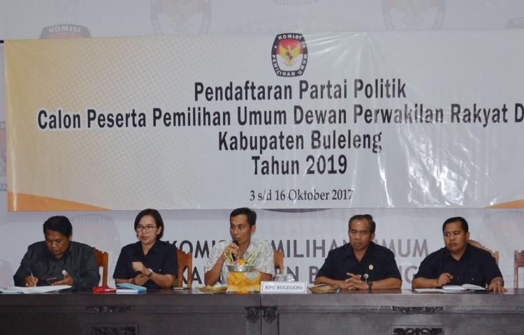 Hingga batas waktu terakhir pendaftaran partai politik (parpol) Calon Peserta Pemilihan Umum Dewan Perwakilan Rakyat Daerah Kabupaten Buleleng Tahun 2019, Selasa (16/10/2017) Pkl. 24.00 wita, total ada 18 parpol yang mendaftar, 14 parpol diterima sedangkan 4 parpol dikembalikan untuk diperbaiki.