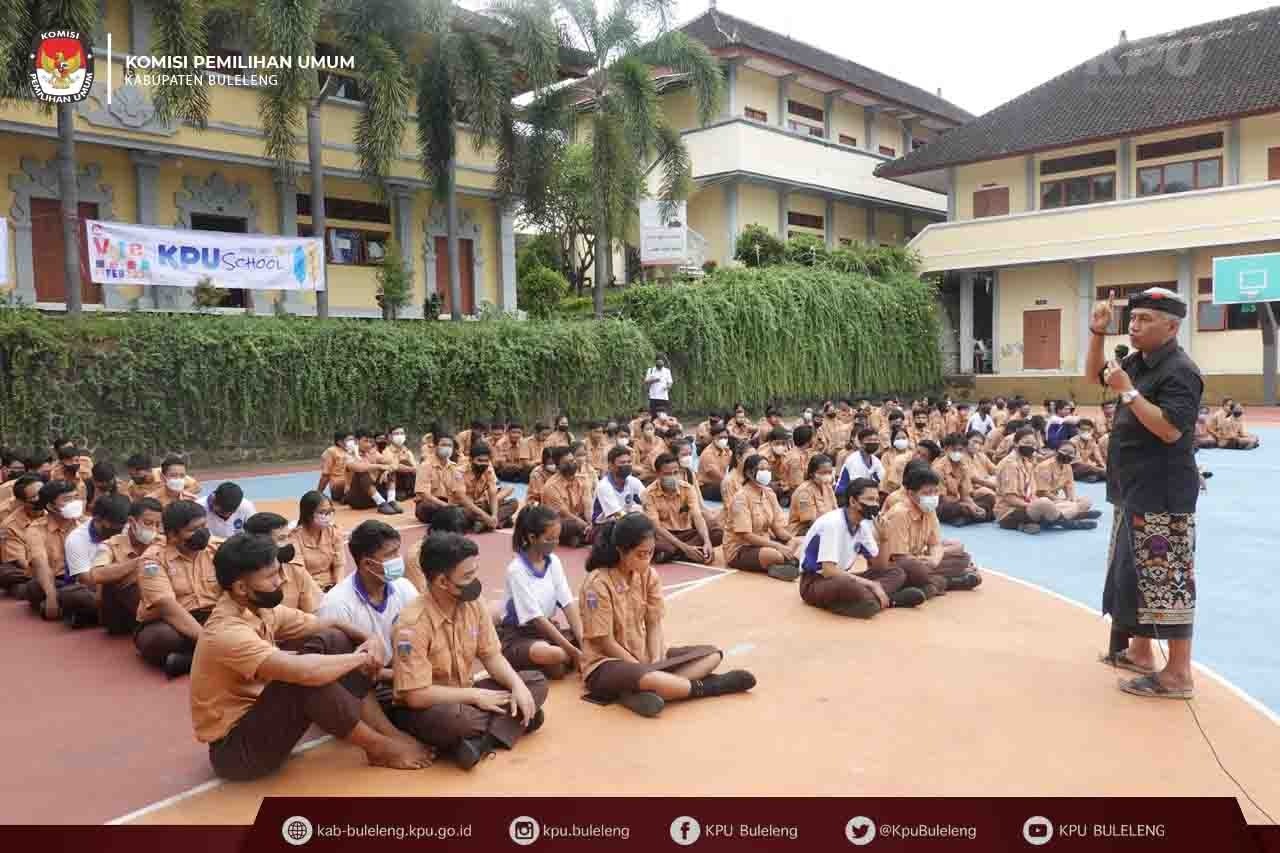 Buleleng, kab-buleleng.kpu.go.id - Rangkaian Sosialisasi Pendidikan Pemilih “KPU Goes to School” Komisi Pemilihan Umum Kabupaten Buleleng kali ini menyasar sebanyak 400 orang siswa yang tersebar di dua sekolah yakni SMAN 1 Sukasada dan SMA Bali Mandara. (25/05/2022)