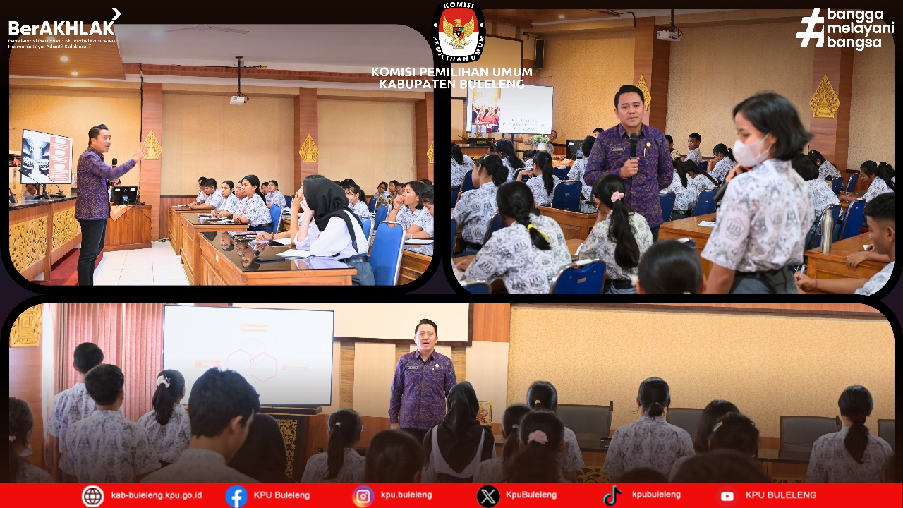 Sosialisasi dibawakan langsung oleh Putu Arya Suarnata selaku Ketua Divisi Sosdiklih Parmas SDM KPU Buleleng. Dalam kesempatan tersebut, para siswa dikenalkan dengan tugas dan peran Divisi Sosdiklih KPU serta pentingnya literasi demokrasi sejak dini.