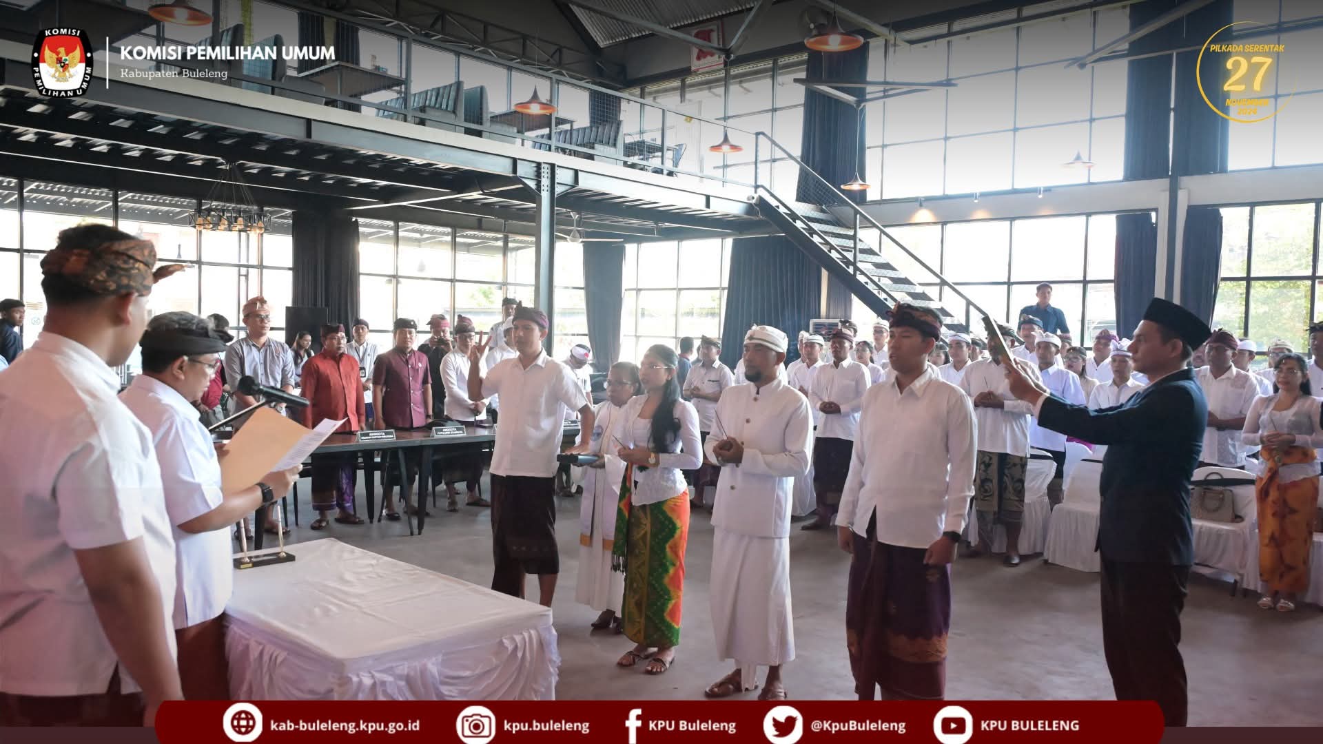 Dengan disaksikan oleh rohaniawan masing-masing, acara pengambilan sumpah dan janji tersebut juga dihadiri oleh Ketua KPU Provinsi I Dewa Agung Gede Lidartawan, Ketua Bawaslu Kabupaten Buleleng Kadek Carna Wirata, Kepala Badan Kesbangpol Kabupaten Buleleng Komang Kappa Tri Aryandono dan undangan dari instansi terkait di Pemkab Buleleng serta Camat se-Kabupaten Buleleng.