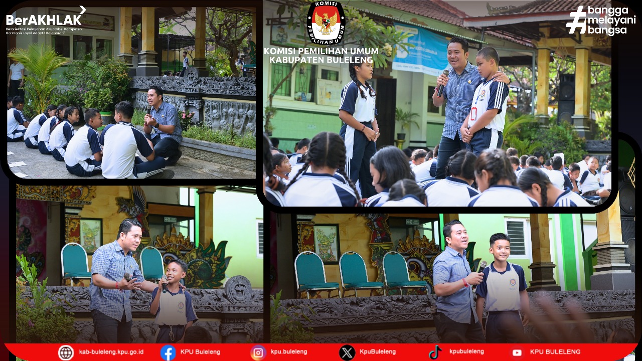 Singaraja, kab-buleleng.kpu.go.id – Komisi Pemilihan Umum (KPU) Kabupaten Buleleng melalui Ketua Divisi Sosialisasi, Pendidikan Pemilih, Partisipasi Masyarakat, dan SDM, Putu Arya Suarnata, menjadi narasumber dalam kegiatan pembelajaran kokurikuler bertajuk Suara Demokrasi di SMP Negeri 6 Singaraja pada Sabtu (4/10/2025).