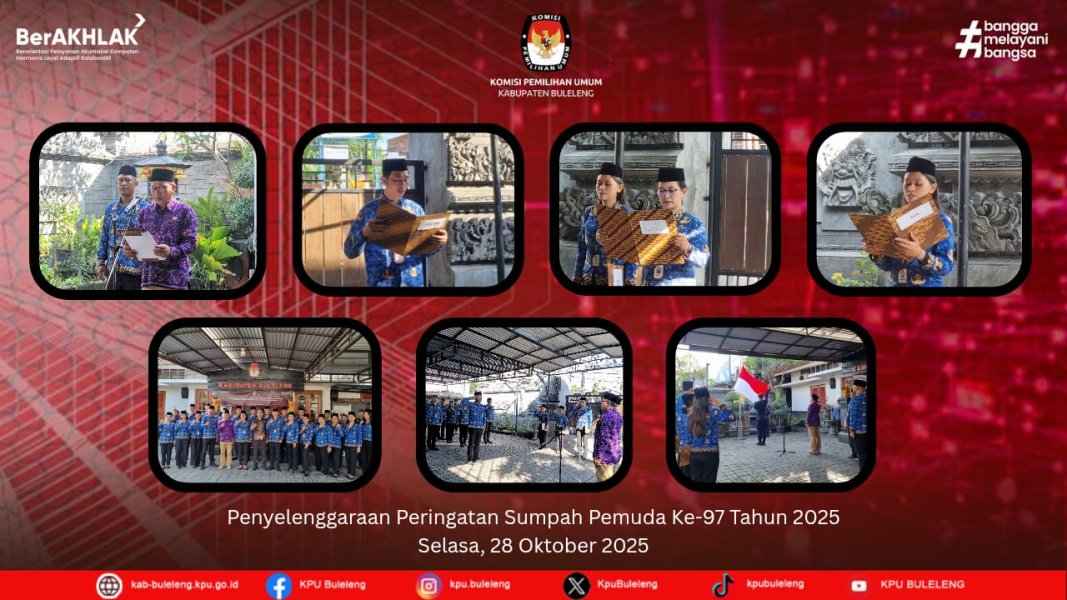 Melalui momentum peringatan Hari Sumpah Pemuda dengan tema “Pemuda Pemudi Bergerak, Indonesia Bersatu” ini, KPU Kabupaten Buleleng berharap nilai-nilai persatuan, semangat juang, dan dedikasi para pemuda Indonesia dapat menjadi inspirasi dalam menjalankan tugas kelembagaan, khususnya dalam mewujudkan penyelenggaraan pemilu yang berintegritas dan berkeadilan. (Parhumas/ KPU Buleleng)