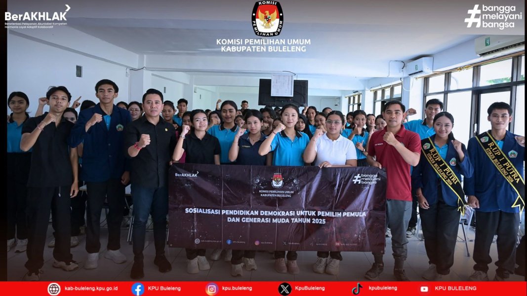 Kegiatan ini dihadiri langsung oleh Ketua dan Anggota KPU Kabupaten Buleleng, serta staf dari Divisi Sosialisasi, Pendidikan Pemilih, Partisipasi Masyarakat, dan SDM (Sosdiklih Parmas SDM). Materi sosialisasi disampaikan oleh Anggota KPU Buleleng Ketua Divisi Sosdiklih Parmas SDM, Putu Arya Suarnata, yang memberikan pemaparan interaktif kepada peserta.