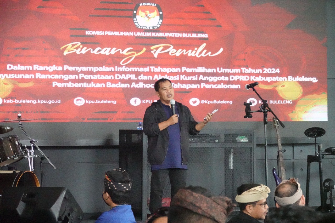 Singaraja, kab-buleleng.kpu.go.id – Dalam rangka penyampaian Tahapan Pemilihan Umum Tahun 2024 tentang Penyusunan Rancangan Penataan Dapil dan Alokasi Kursi Anggota DPRD Kabupaten Buleleng, Pembentukan Badan Ad hoc dan Tahapan Pencalonan DPD, Komisi Pemilihan Umu (KPU) Kabupaten Buleleng menggelar acara Bincang Pemilu yang dilaksanakan di Berutz Bar & Resto Singaraja, Kamis (24/11/2022).