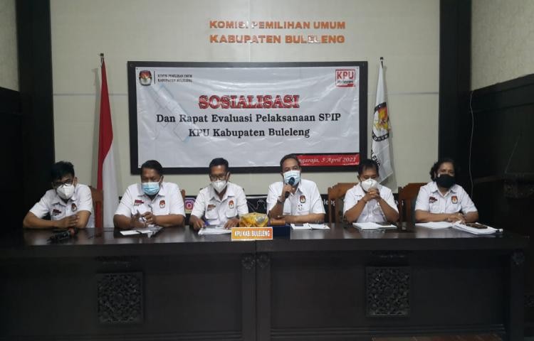 Divisi Hukum dan Pengawasan Komisi Pemilihan Umum (KPU) Kabupaten Buleleng melaksanakan Rapat Evaluasi dan Sosialisasi Pelaksanaan Sistem Pengendalian Intern Pemerintah (SPIP) di Lingkungan KPU Buleleng, Senin (5/4/2021) di Ruang Rapat Kantor KPU Buleleng, Jl. Ahmad Yani Nomor 95 Singaraja.