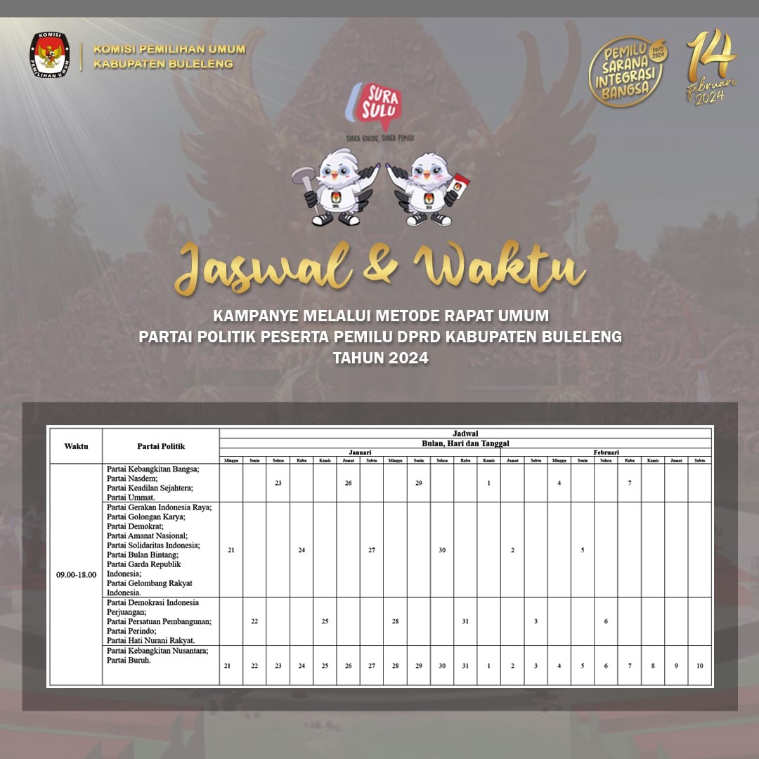 JADWAL DAN WAKTU PELAKSANAAN KAMPANYE DALAM BENTUK RAPAT UMUM PEMILU 2024