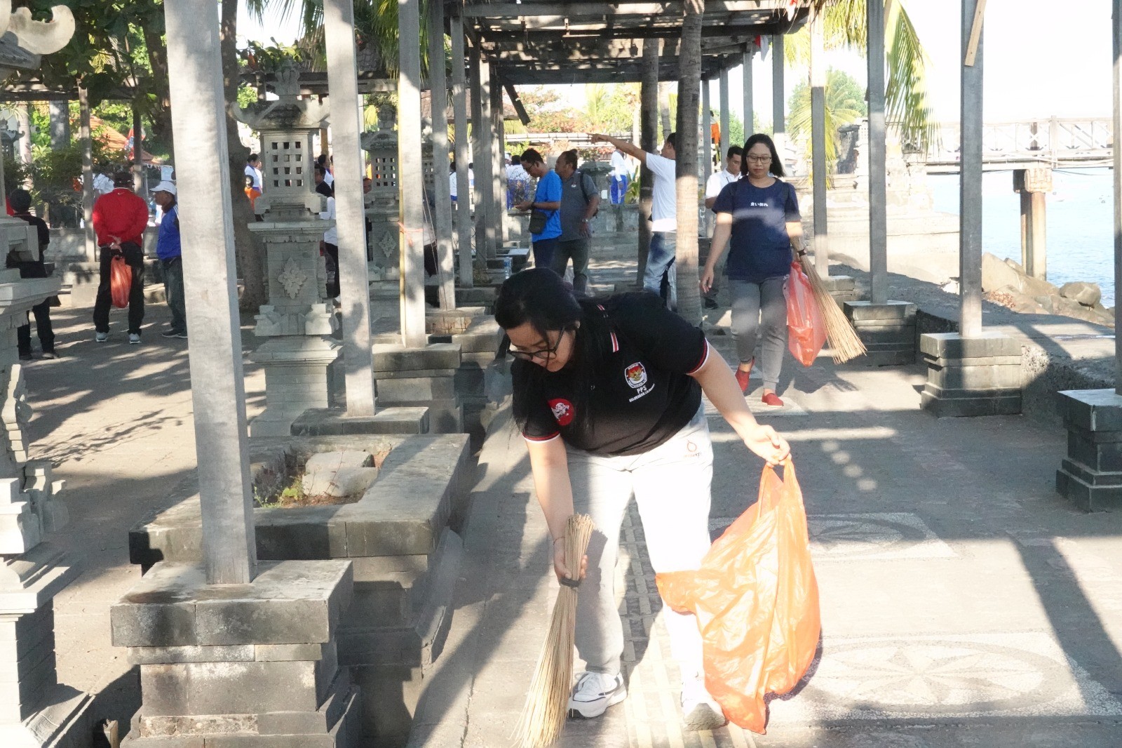 Kirab Pemilu Hari ke-2, KPU Buleleng Laksanakan Sosialisasi Pendidikan Pemilih dan Bersih-bersih Pantai Pelabuhan Buleleng