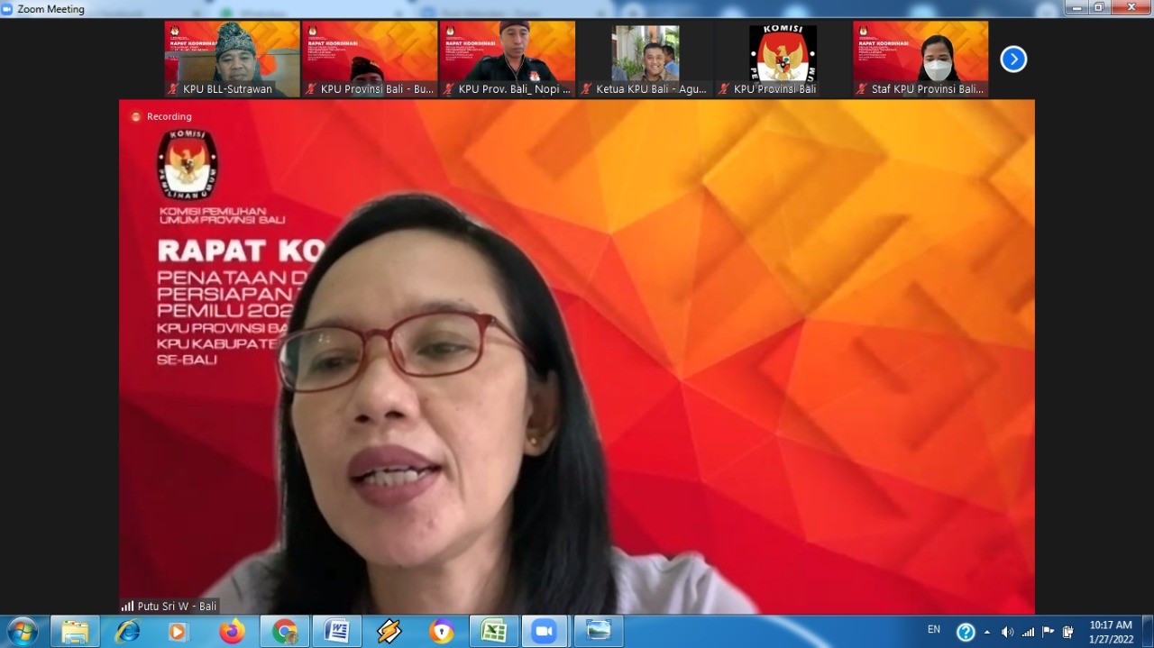 Rakor tersebut dipandu oleh Anggota Divisi Teknis Penyelenggara KPU Provinsi Bali, Luh Putu Sri Widyastini, di hadiri oleh Anggota Divisi Teknis beserta Kasubag Teknis dari KPU Kabupaten/Kota se-Bali.