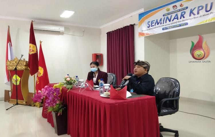 Hal ini diungkap dalam seminar kepemiluan yang diselenggaran oleh Himpunan Mahasiswa Jurusan (HMJ) Darma Duta STAHN Mpu Kuturan, Kamis (25/2/2021) di Aula STAH Mpu Kuturan Singaraja. Hadir sebagai narasumber adalah Anggota KPU Kabupaten Buleleng, Divisi Teknis Penyelenggara, Gede Sutrawan, S.Sn., M.Sn.