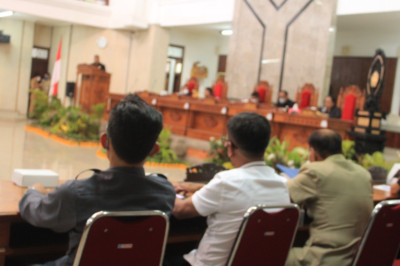 Rapat yang dihadiri oleh Pimpinan Fraksi serta Anggota DPRD Kabupaten Buleleng, Wakil Bupati Buleleng, Forkompimda, Unsur TNI/Polri, KPU, Bawaslu, Pimpinan partai politik dan juga media ini dibuka oleh Ketua DPRD Kabupaten Buleleng, Gede Supriatna. Agenda rapat adalah penyampaian Laporan Panitia Khusus dan penyampaian Laporan Akhir Bupati atas Rancangan Peraturan daerah (Ranperda) tentang Perubahan Ketiga atas Perda No. 13 Tahun 2016 tentang Pembentukan dan Susunan Perangkat Daerah, Ranperda tentang Retribusi Persetujuan Bangunan Gedung, Ranperda tentang Urusan Pemerintahan Daerah dan Ranperda tentang Retribusi Penggunaan Tenaga Kerja Asing, penyampaian rekomendasi DPRD atas Laporan Keterangan Pertanggungjawaban (LKPJ) Bupati Buleleng Tahun 2021.