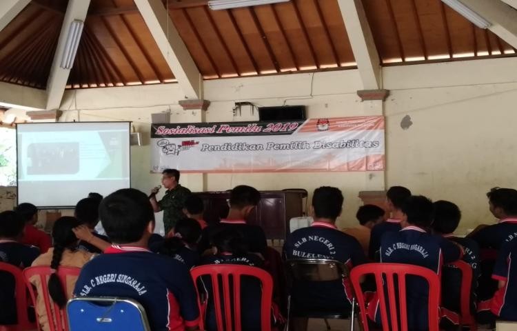 Sebagai Narasumber adalah Komisioner KPU Kabupaten Buleleng, Made Sumertana. Peserta sosialisasi adalah siswa-siswi SLBN 2 Buleleng yang telah berusia 17 tahun atau lebih.