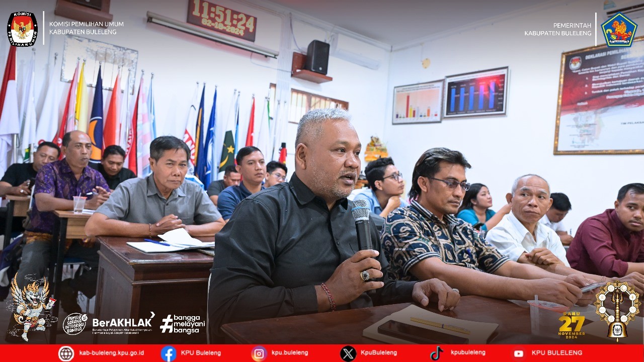 Singaraja.kab-buleleng.kpu.go.id – Dalam rangka meningkatkan partisipasi masyarakat pada Pemilihan Gubernur dan Wakil Gubernur Bali, Bupati dan Wakil Bupati Buleleng Tahun 2024, KPU Kabupaten Buleleng menggelar Rapat Koordinasi Persiapan Gebyar Sosialisasi Pilkada Serentak Nasional Tahun 2024 bertempat di Kantor KPU Kabupaten Buleleng pada Rabu, (2/10/2024).