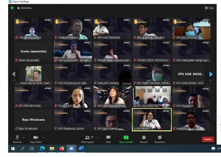 Anggota Komisi Pemilihan Umum Kabupaten Buleleng Divisi Hukum dan Pengawasan bersama Kasubag Hukum I Made Artawan mengikuti acara diskusi yang diselenggarakan KPU Provinsi Bali yang diinisiasi oleh Divisi Hukum dan Pengawasan Provinsi Bali, pada hari Senin (27/12) secara daring.