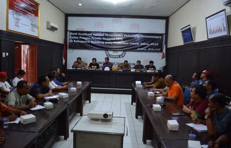KPU Kabupaten Buleleng melakukan serah terima Berita Acara Hasil Verifikasi Faktual Dukungan Perseorangan Calon Peserta Pemilu Anggota DPD Provinsi Bali di Kabupaten Buleleng.