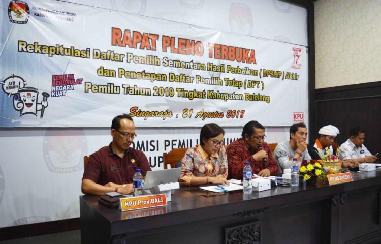 Jumlah ini ditetapkan melalui rapat pleno terbuka Penetapan Daftar Pemilih Tetap yang dipimpin oleh Komisioner KPU Buleleng, Nyoman Gede Cakra Budaya dan dihadiri oleh Komisioner KPU Provinsi Bali, Bawaslu Kabupaten Buleleng, instansi terkait di Pemkab Buleleng, Ketua Partai Politik Peserta Pemilu 2019 serta PPK se-Kabupaten Buleleng.