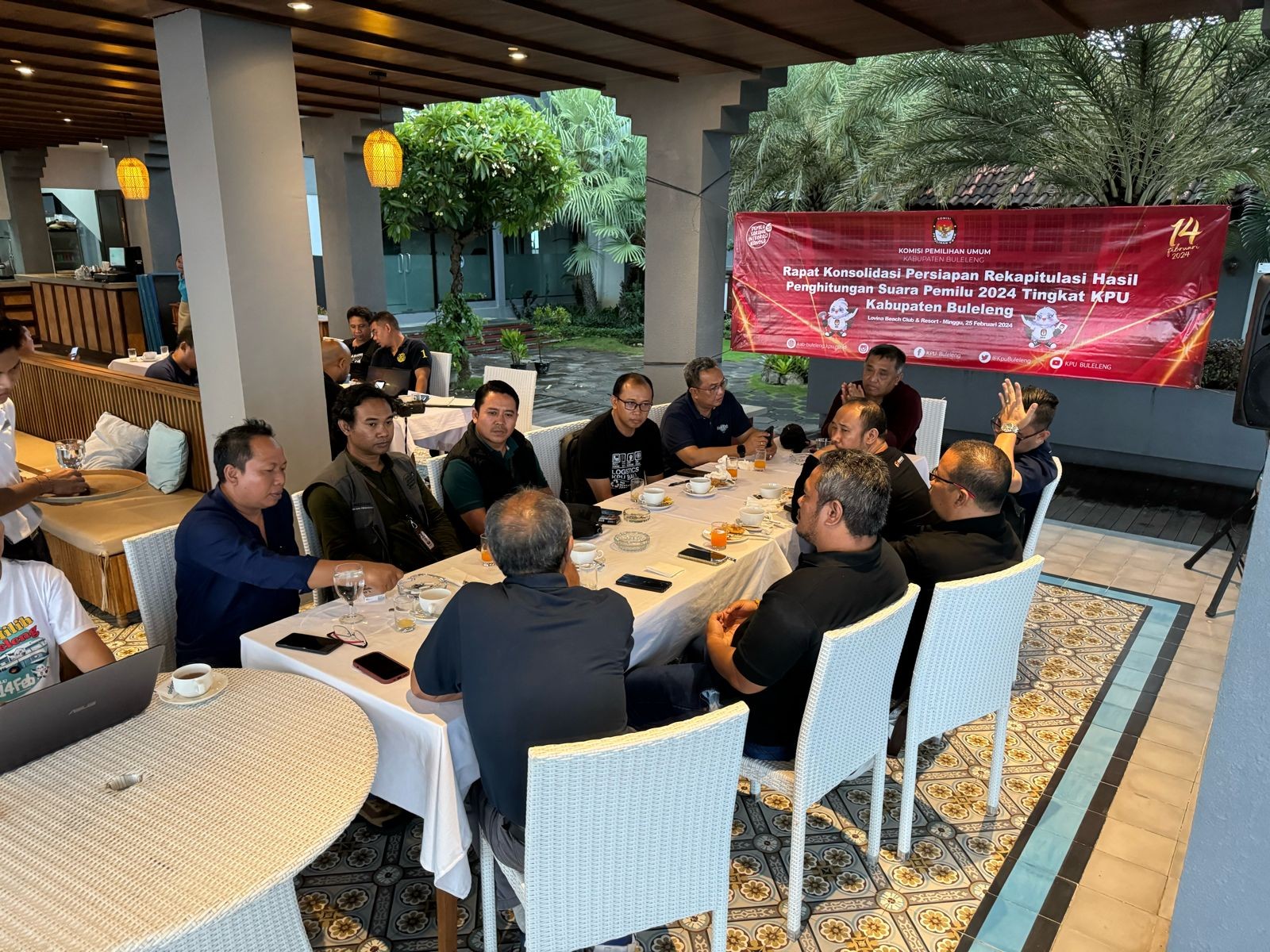 Singaraja, kab-buleleng.kpu.go.id – KPU dan Bawaslu Kabupaten Buleleng melaksanakan rapat konsolidasi menjelang rekapitulasi penghitungan perolehan suara Pemilu 2024 tingkat Kabupaten Buleleng di The Lovina Beach Club & Resort, Minggu, (25/2/2024).