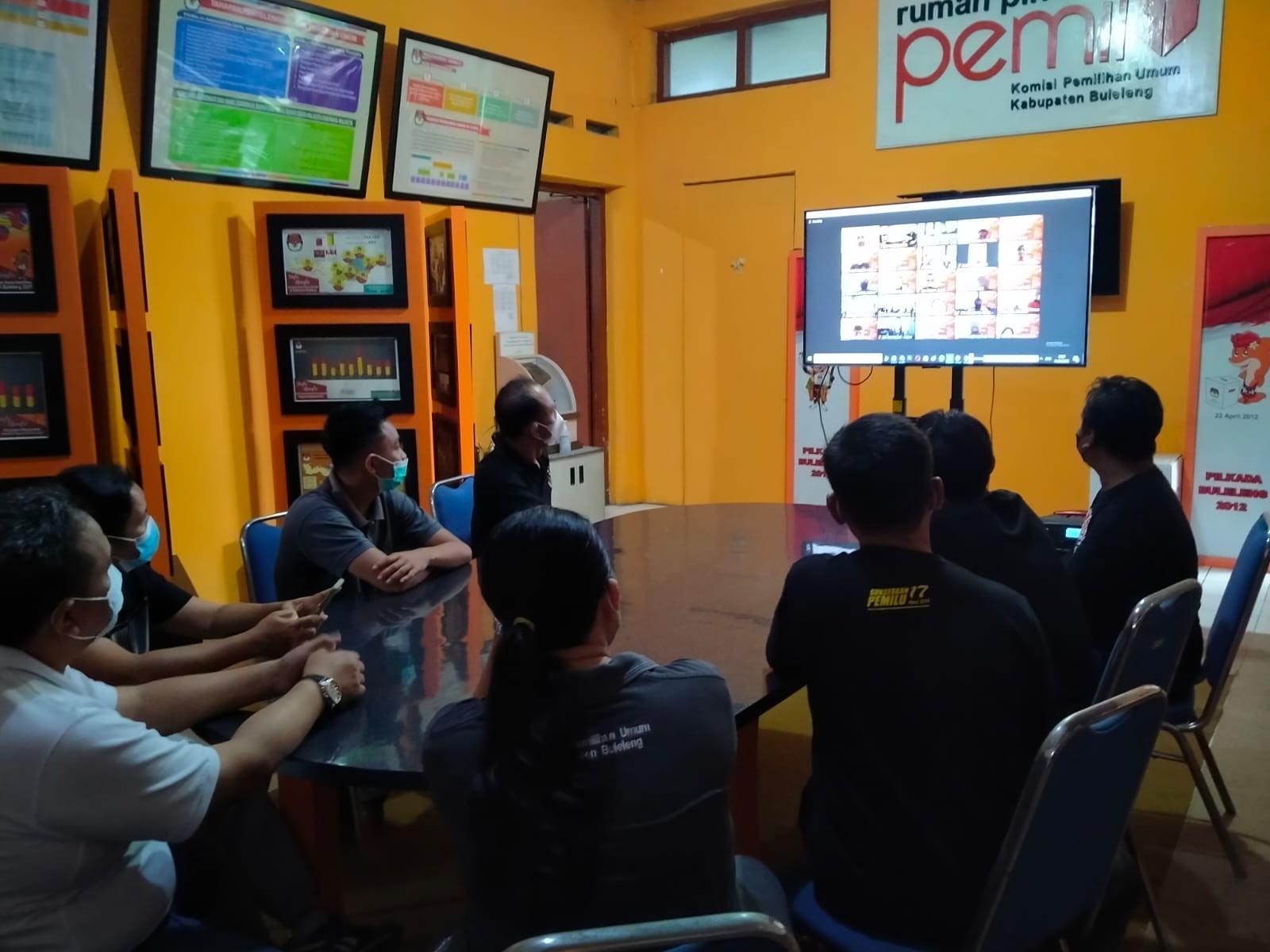 Seluruh jajaran KPU dan Sekretariat KPU Kabupaten Buleleng menghadiri sosialisasi PKPU No. 8 Tahun 2021 tentang Perubahan atas Peraturan KPU No. 2 Tahun 2021 tentang Tata Naskah Dinas KPU RI, KPU Provinsi dan KPU Kabupaten/Kota yang digelar oleh KPU Provinsi Bali secara daring, Jumat (11/2/2022).