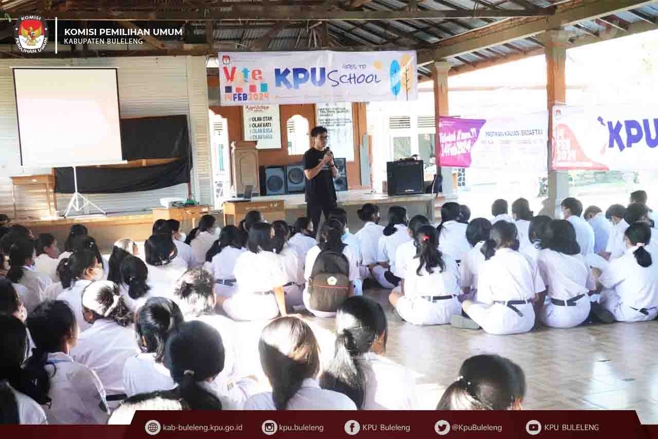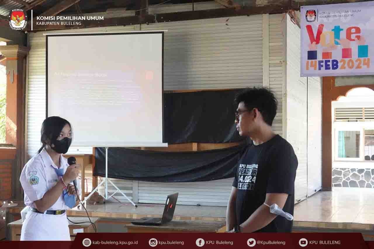 Singaraja, kab-buleleng.kpu.go.id – Program sosialisasi pendidikan pemilih “KPU Goes To School” yang dirancang Komisi Pemilihan Umum (KPU) Kabupaten Buleleng untuk meningkatkan partisipasi pemilih khususnya pemilih pemula, kali ini dilaksanakan di SMA Negeri 2 Singaraja, Senin (23/5/2022). Sebagai narasumber adalah Anggota KPU Kabupaten Buleleng Divisi Sosialisasi, Pendidikan Pemilih, Partisipasi Masyarakat dan SDM Gede Bandem Samudra.