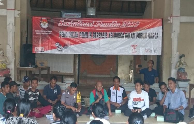 “Kami ingatkan agar bapak-bapak dan ibu-ibu tidak golput, gunakan hak pilih anda pada tanggal 17 April 2019 di TPS dimana bapak/ibu terdaftar,” demikian Komisioner KPU Kabupaten Buleleng, Gede Bandem Samudra menyampaikan kepada peserta sosialisasi, Jumat (30/11/2018) di Balai Banjar Desa Sudaji.