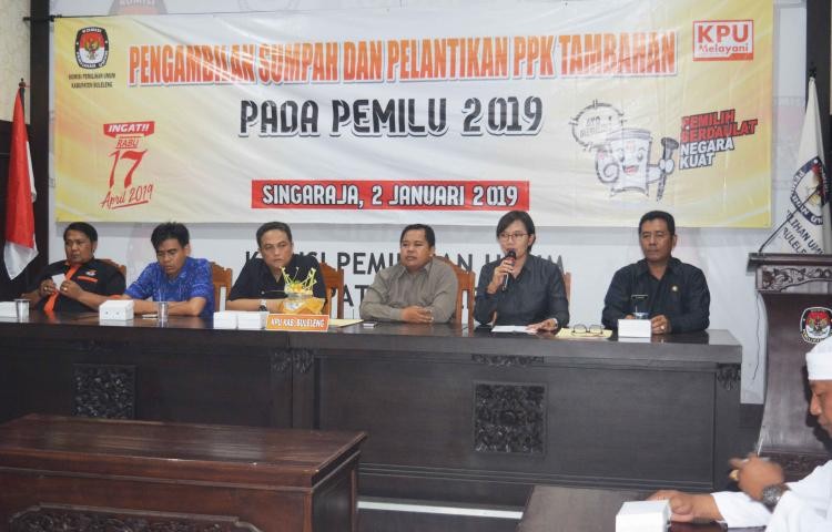 KPU Kabupaten Buleleng melantik PPK tambahan untuk Pemilu Tahun 2019 sejumlah 18 orang dari sembilan kecamatan di Kabupaten Buleleng.