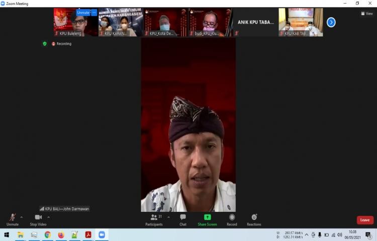 Menindaklanjuti Rapat Koordinasi (Rakor) Badan Koordinasi Kehumasan (Bakohumas) yang diselenggarakan oleh KPU RI Selasa (4/5/2021), KPU Provinsi Bali menggelar Rakor Bakohumas secara daring untuk jajaran KPU Kabupaten di Provinsi Bali pada Kamis (6/5/2021). Rakor bertema Peningkatan Peran Eksistensi Bakohumas antara KPU Provinsi Bali dan KPU Kabupaten/Kota se-Bali tersebut diikuti oleh Anggota KPU Divisi Sosialisasi, Pendidikan Pemilih, Partisipasi Masyarakat, dan SDM, Kepala Sub Bagian Teknis dan Hupmas, serta Operator Siparmas KPU Kabupaten/Kota se Bali.