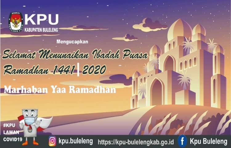 Marhaban Yaa Ramadhan, kami dari Keluarga Besar KPU Kabupaten Buleleng mengucapkan selamat menunaikan Ibadah Puasa 1441 H / 2020 M, mohon ma’af lahir dan batin
