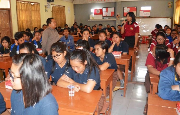 Penyampaian Gede Sutrawan disimak dengan santai namun serius oleh Siswa-siswi terebut.