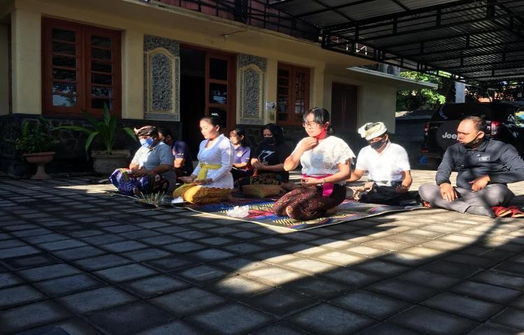 Sesuai dengan SE KPU RI Nomor 19 Tahun 2020 tentang sistem kerja dalam tatanan normal baru, KPU Kabupaten Buleleng sejak hari ini kembali bekerja di kantor, yang diawali dengan acara sembahyang bersama, Jumat (5/6/2020) di Padmasana Kantor KPU Buleleng.