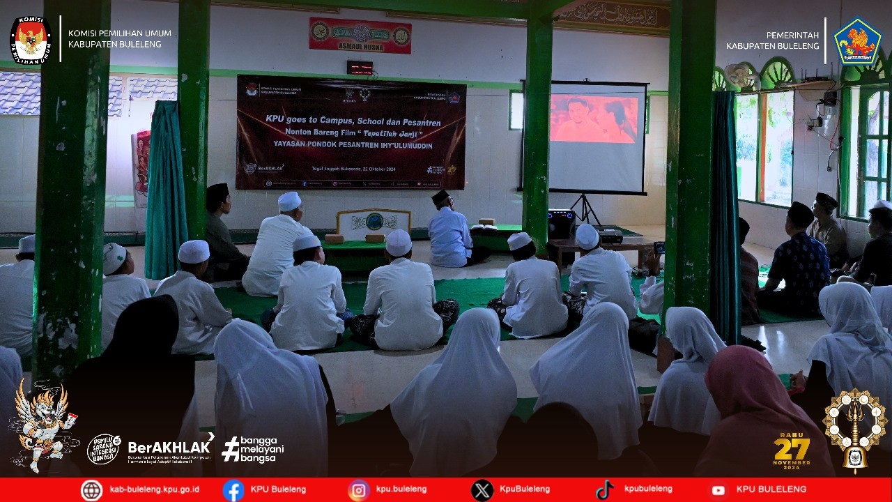 Singaraja.kab-buleleng.kpu.go.id- Dalam rangka hari Santri se-Indonesia Komisi Pemilihan Umum (KPU) Kabupaten Buleleng melaksanakan kegiatan Nonton Bareng (Nobar) film “tepatilah janji” bertempat di Yayasan Pondok Pesantren Ihya’Ulumuddin di BD. Mundukkunci, Desa tegallinggah Kecamatan Sukasada, Selasa, (22/10/2024)