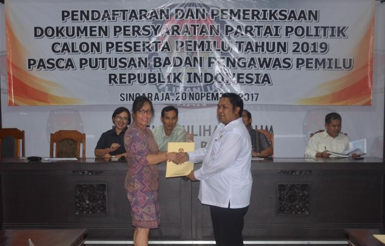 PDI Perjuangan menyerahkan perbaikan dokumen keanggotaan parpol ke KPU Kabupaten Buleleng , Selasa (28/11/2017) melalui LO-nya, Lilik Nurmiati.