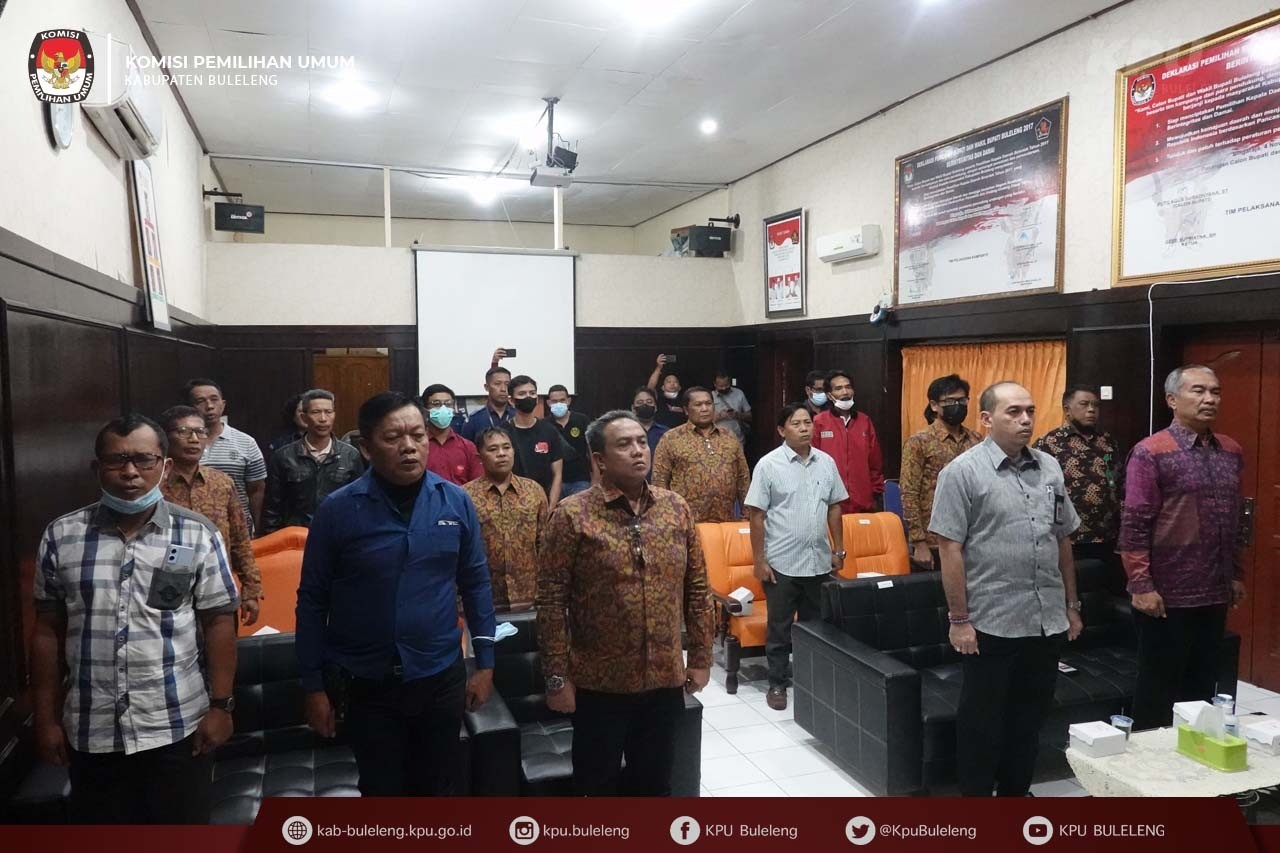 Acara yang dilaksanakan di Ruang Rapat Kantor KPU Kabupaten Buleleng tersebut dimulai Pukul 20.00 Wita dengan mengundang Bupati Buleleng, jajaran Forkopimda Kabupaten Buleleng, Ketua Bawaslu Kabupaten Buleleng, Pimpinan Partai Politik di Kabupaten Buleleng serta kalangan media di Kabupaten Buleleng.
