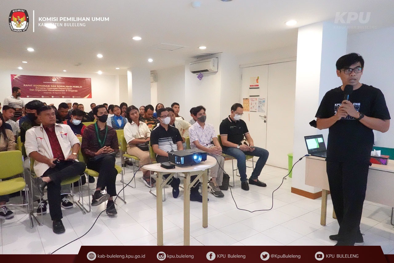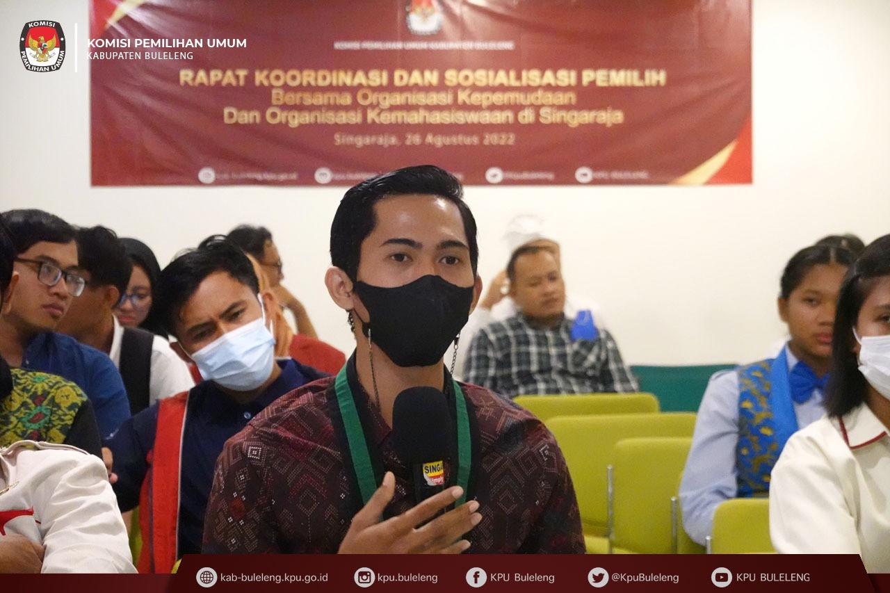 Pada acara yang mengundang ketua organisasi mahasiswa dan organisasi kepemudaan di Kabupaten Buleleng tersebut, Anggota KPU Kabupaten Buleleng Divisi Sosialisasi, Pendidikan Pemilih, Partisipasi Masyarakat dan SDM Gede Bandem Samudra selaku narasumber juga menyampaikan bahwa pendidikan pemilih dilakukan dalam rangka meningkatkan pemahaman dan pengetahuan kepada masyarakat tentang pentingnya pemilu. “Dengan mengundang Bapak, Ibu dan adik-adik mahasiswa sekalian, diharapkan dapat menjadi narahubung penyebarluasan informasi tentang pentingnya pemilu minimal di lingkungan masing-masing, agar semakin banyak masyarakat yang sadar akan pentingnya pemilu sehingga akan meningkatkan parisipasi pemilih pada Pemilu Tahun 2024 mendatang,” kata Bandem Samudra.