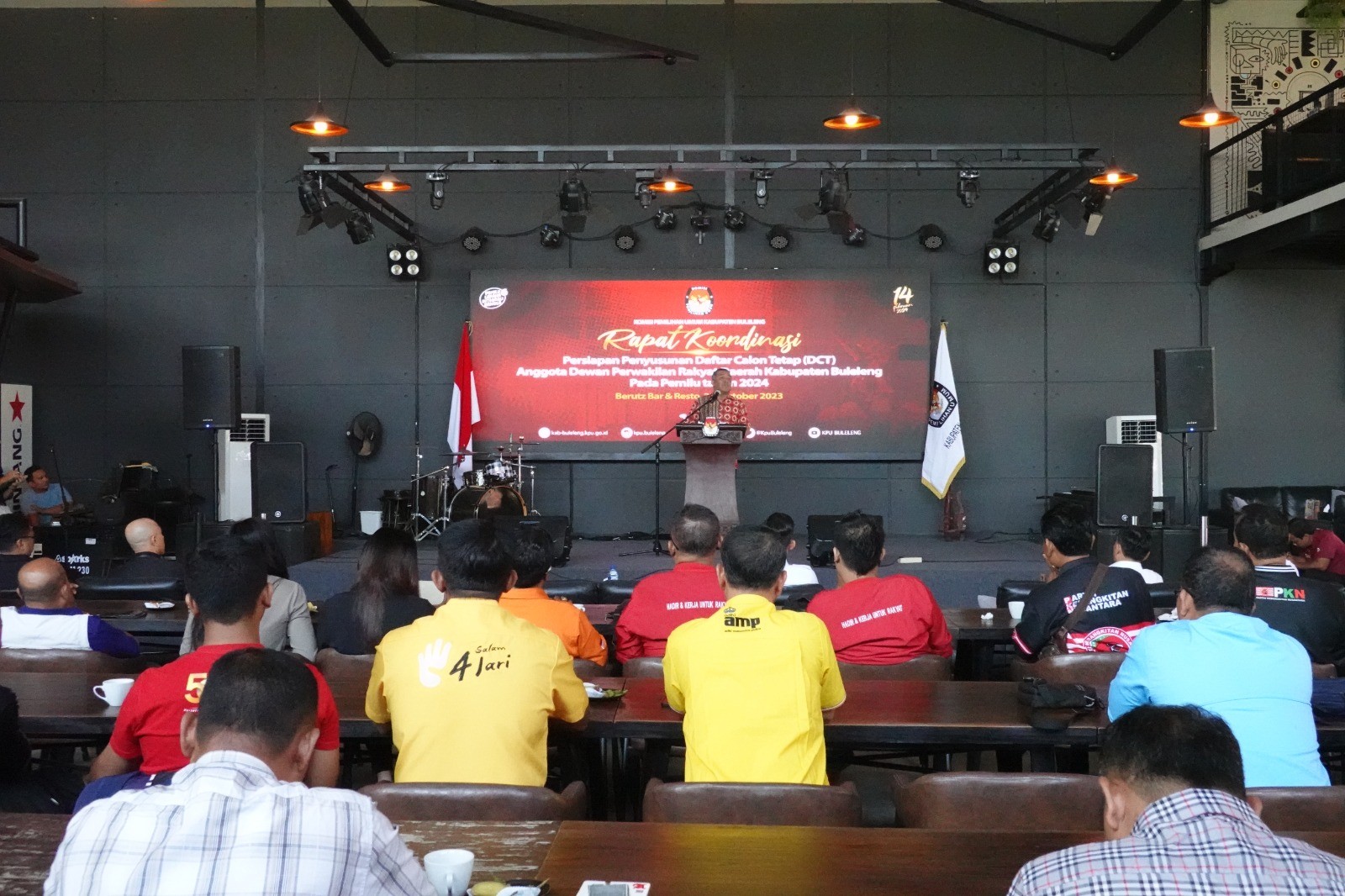 Singaraja, kab-buleleng.kpu.go.id – Komisi Pemilihan Umum (KPU) Kabupaten Buleleng melaksanakan Rapat Koordinasi Persiapan Penyusunan DCT Anggota DPRD Kabupaten Buleleng pada Pemilu Tahun 2024 di Berutz Bar & Resto Singaraja, Rabu (25/10/2023).