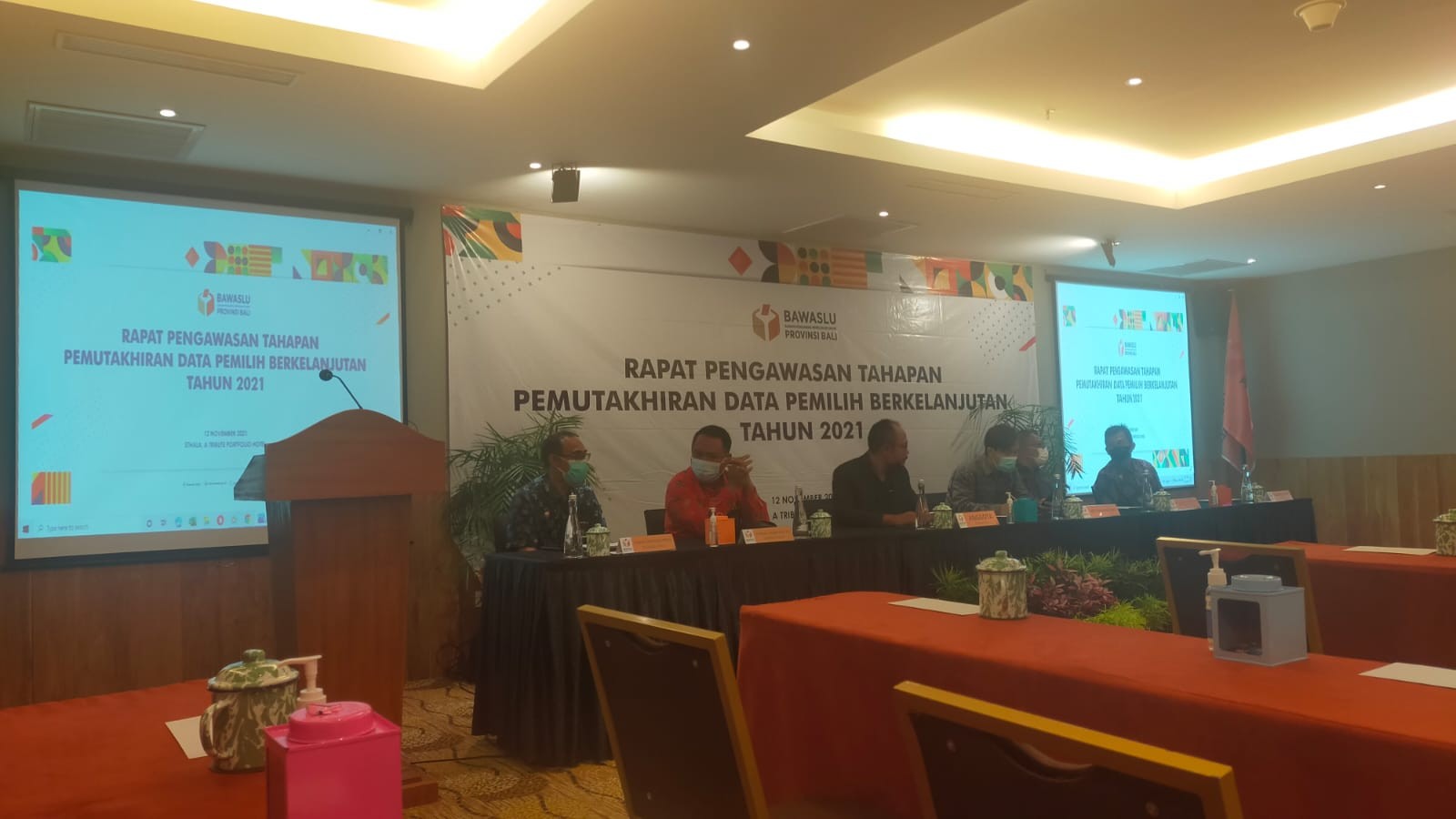 KPU Kabupaten Buleleng menghadiri rapat pengawasan tahapan Pemutakhiran Data Pemilih Berkelanjutan Tahun 2021 yang diselenggarakan oleh Bawaslu Provinsi Bali di Stala, a Tribute Portfolio Hotel, Ubud Bali pada hari Jumat, 12 November 2021.