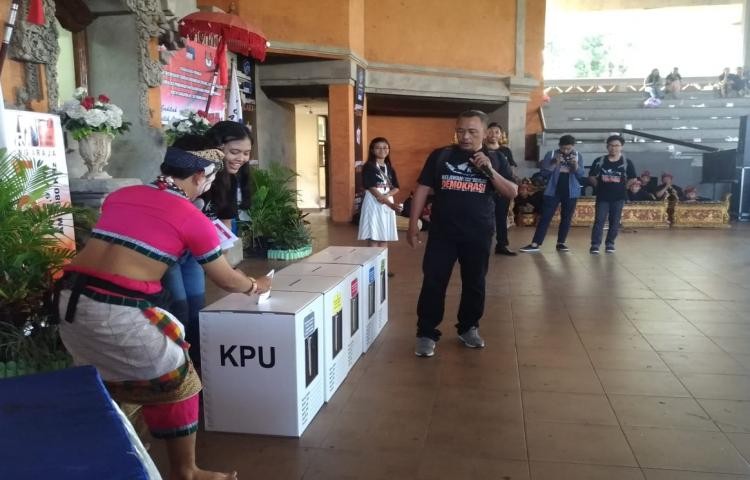 Komisi Pemilihan Umum (KPU) Kabupaten Buleleng bersama Relawan Demokrasi Pemilu 2019 memberikan simulasi pencoblosan surat suara di TPS kepada 4000 pelajar dan mahasiswa di Buleleng.