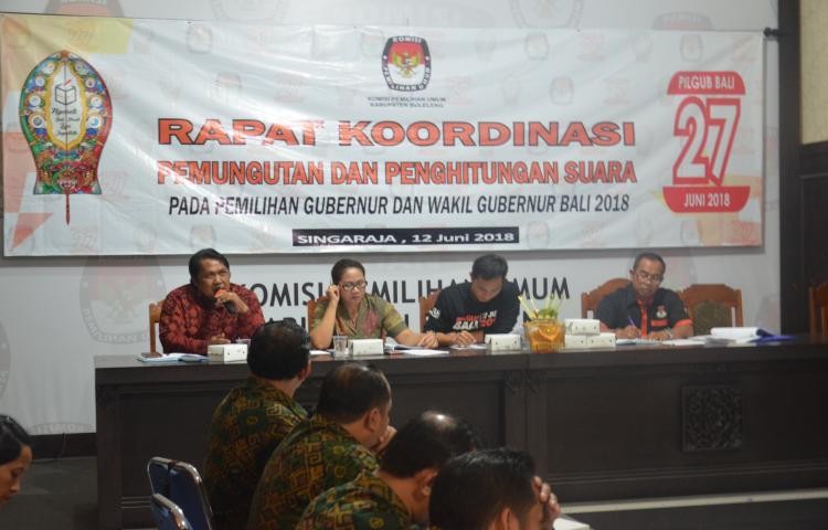 Untuk mempermudah koordinasi dan komunikasi antar penyelenggara, pengawas dan instansi terkait, KPU Kabupaten Buleleng melaksanakan rapat koordinasi Pemungutan dan Penghitungan Suara Pemilihan Gubernur dan Wakil Gubernur Bali Tahun 2018.