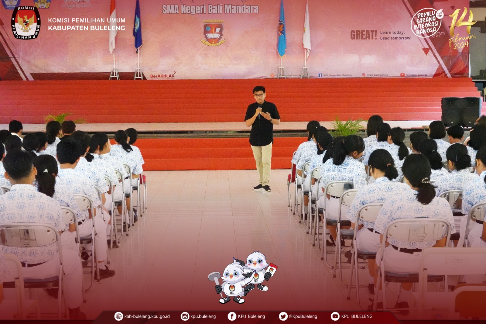 Singaraja, kab-buleleng.kpu.go.id - KPU Buleleng melaksanakan sosialisasi pendidikan pemilih dalam rangka menyongsong pelaksanaan Tahapan Pemilu dan Pemilihan Serentak Tahun 2024, di SMA Negeri Bali Mandara Kubutambahan, Rabu (11/10/2023).