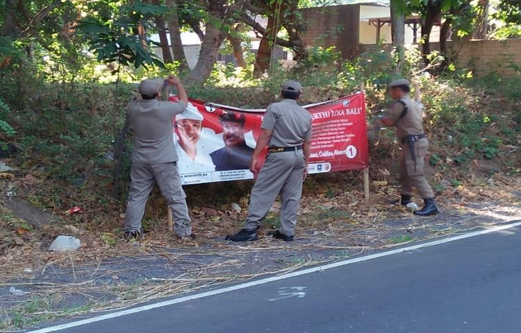 KPU Buleleng bersama Satpol PP dan Panwaslu Kabupaten Buleleng bersama-sama melakukan penertiban alat peraga kampanye (APK) Pasangan Calon Pemilihan Gubernur dan Wakil Gubenur Bali Tahun 2018 di wilayah Kabupaten Buleleng.