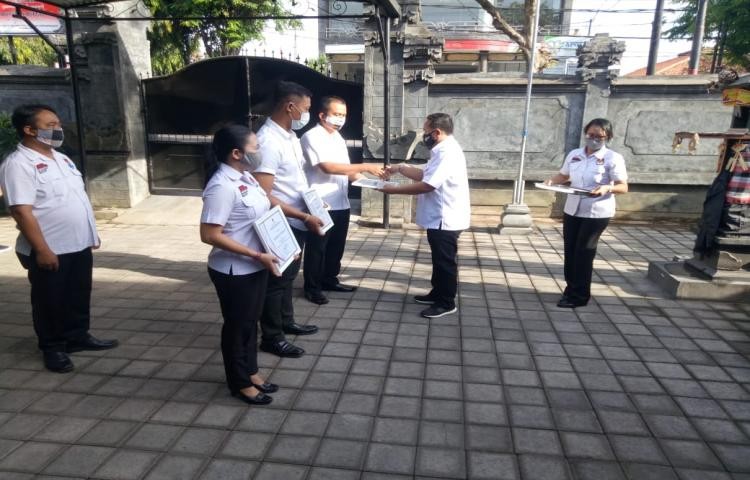 Piagam penghargaan diberikan langsung oleh Ketua KPU Buleleng, Komang Dudhi Udiyana seusai upacara bendera, Senin (7/9/2020) di halaman Kantor KPU Buleleng.