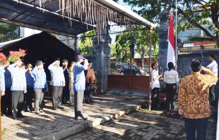 Upacara berlangsung khidmat, dimulai pkl. 08.00 wita diikuti oleh Komisioner dan Sekretariat KPU Kabupaten Buleleng. (adm)