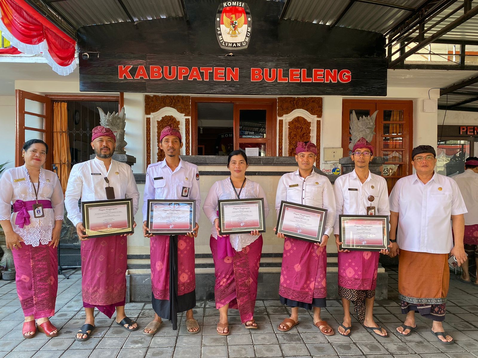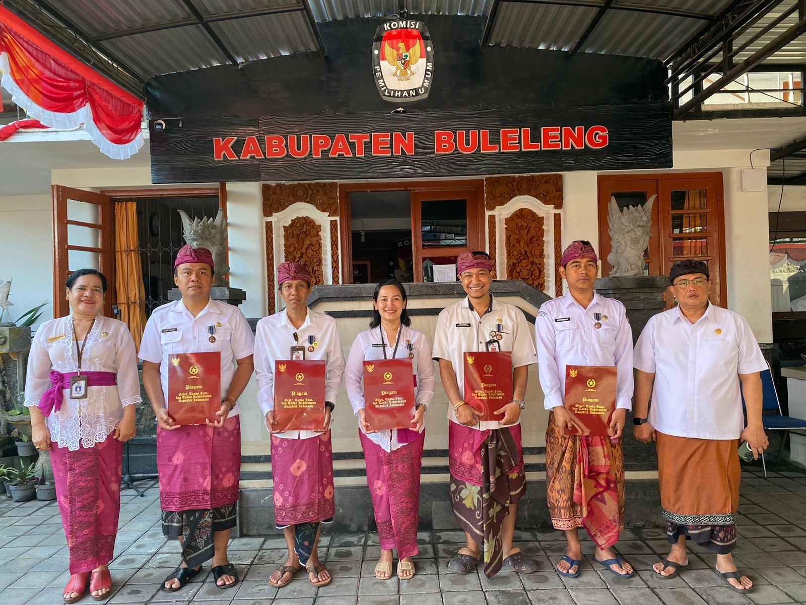 Dalam kesempatan tersebut, Ketua KPU Kabupaten Buleleng juga sekaligus menyerahkan Piagam Tanda Penghormatan Satyalencana Karya Satya kepada lima Staf PNS yang telah bekerja selama 10 tahun, menyerahkan piagam penghargaan kepada Kasubbag terbaik dan Staf PNS terbaik di masing-masing Sub Bagian, serta menyerahkan SK Kenaikan pangkat kepada beberapa pegawai. (Ikke/Foto KPU Buleleng/Kobe/Hupmas)