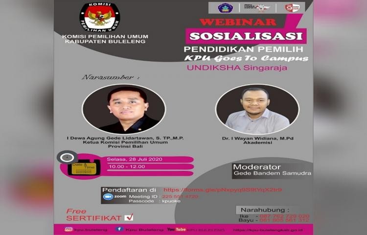 WEBINAR SOSIALISASI PENDIDIKAN PEMILIH KPU GOES TO CAMPUS : UNDIKSHA SINGARAJA