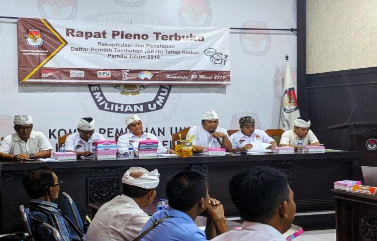 Menjelang hari pemungutan suara Pemilu 2019 yang digelar pada 17 April mendatang, Komisi Pemilihan Umum (KPU) Kabupaten Buleleng melaksanakan Bimtek Pemungutan, Penghitungan dan Rekapitulasi Perolehan Suara kepada PPK se-Kabupaten Buleleng. Selain mengundang PPK, KPU Buleleng juga mengundang Sekretaris PPK dan Ketua Panwascam se-Kabupaten Buleleng. Bimtek dilaksanakan selama dua hari, dari hari Jumat hingga Sabtu (15-16 Maret 2019) di Hotel Saranam, Baturiti – Tabanan. “Bimtek ini dilaksanakan dalam rangka memberikan pembekalan dan pemahaman yang sama kepada PPK, Sekretaris PPK dan Panwascam se-Kabupaten Buleleng prihal tatacara pemungutan, penghitungan dan rekapitulasi perolehan suara pada Pemilu 2019 dari tingkat TPS hingga tingkat PPK,” ungkap Gede Sutrawan, Komisioner Divisi Teknis KPU Buleleng kepada peserta bimtek. Meteri yang disampaikan secara bergiliran oleh Komisioner KPU Buleleng adalah terkait pemungutan dan penghitungan suara termasuk tatacara pengisian semua jenis formulir C1 mulai dari Pemilihan Presiden dan Wakil Presiden, Pemilihan DPD, DPRD Provinsi hingga DPRD Kabupaten, rekapitulasi penghitungan suara di tingkat PPK, Logistik Pemilu 2019. Pada hari kedua, dilaksanakan simuilasi pemungutan suara di TPS yang dipandu oleh Komisioner KPU Buleleng, Nyoman Gede Cakra Budaya. Dari hasil simulasi, terungkap beberapa kendala pada saat pencoblosan, diantaranya durasi waktu mencoblos yang mencapai 3-5 menit, kesulitan dalam melipat kembali surat suara serta banyaknya permintaan pendampingan oleh pemilih yang merasa kesulitan mencoblos sendiri.