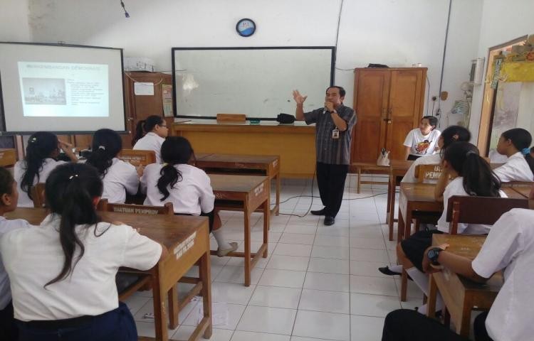 Guna memberikan pendidikan demokrasi dan kepemiluan kepada generasi muda, KPU Kabupaten Buleleng kembali menjadi guru tamu di SMA saraswati Singaraja, Jumat (25/8/2017). Kelas pemilu di sekolah ini diikuti oleh semua kelas sepuluh dan sebelas. Sebagai Pemateri adalah Komisioner KPU Buleleng Divisi Hubungan Masyarakat, Data Informasi dan Hubungan Antar Lembaga, I Made Seriyasa. “Melalui program kelas pemilu ini, kami bermaksud menanamkan secara dini pemahaman tentang kesadaran berdemokrasi dan kepemiluan kepada generasi muda, sehingga bisa dipraktekkan pada saatnya tiba,” ungkap I Made Seriyasa membuka pertemuan. Peserta kelas pemilu mengikuti pemaparan materi dari narasumber dengan antusias, sesekali diselingi canda dan tawa. Pada bagian akhir pertemuan, I Made Seriyasa tidak lupa mengingatkan peserta kelas pemilu untuk ikut berpartisipasi dalam setiap pemilihan. Caranya adalah dengan menggunakan hak pilih dengan baik. “Sesuai undang-undang, WNI yang sudah berusia 17 tahun dinyatakan sudah memiliki hak pilih. Maka jika sudah memiliki hak pilih nanti, pergunakanlah sebaik-baiknya untuk memperbaiki nasib bangsa kedepannya,” tutup I Made Seriyasa. (Adm)