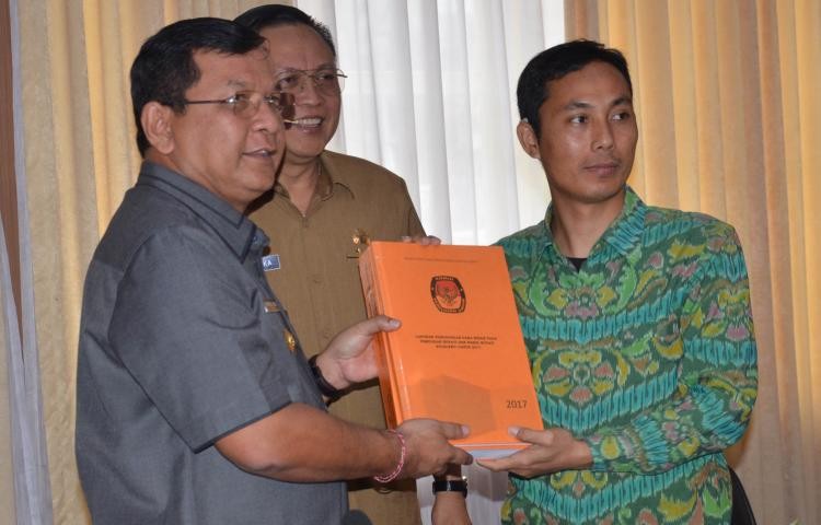 Setelah semua Tahapan Pemilihan Bupati dan Wakil Bupati Buleleng Tahun 2017 dilaksanakan, KPU Kabupaten Buleleng menyerahkan Laporan Tahapan dan Realisasi Dana Hibah pada pelaksanaan Pemilihan Bupati dan Wakil Bupati Buleleng tahun 2017 kepada Pemerintah Kabupaten (Pemkab) Buleleng. “Bahwa sesuai perintah undang-undang, laporan pelaksanaan Pilkada Buleleng 2017 harus diserahkan tiga bulan setelah semua tahapan selesai dilaksanakan, dan tahapan Pilkada Buleleng 2017 selesai pada tanggal 15 Maret 2017 yang ditandai dengan penetapan pasangan calon terpilih (Putu Agus Suradnyana – dr. I Nyoman Sutjidra, Sp.OG, Red),” kata Gede Suardana, Ketua KPU Kabupaten Buleleng di Ruang Pertemuan Kantor Bupati Buleleng, Senin (12/6/2017). Selanjutnya Gede Suardana memaparkan semua tahapan pelaksanaan Pilkada Buleleng 2017 secara umum sudah dilalui dengan baik, dimulai dari tahapan pembentukan panitia adhok, pencalonan, kampanye, pemungutan suara sampai penetapan pasangan calon terpilih. Hanya saja pada tahap pemutakhiran data pemilih, masih banyak masyarakat yang belum melakukan perekaman KTP-El yang menyebabkan permasalahan pada data pemilh. Terkait penggunaan anggaran pilkada yang merupakan dana hibah dari Pemkab Buleleng sebesar Rp. 40.226.000.000,- dilaporkan terdapat sisa anggaran sebesar Rp. 10.423.352.494,- yang akan dkembalikan ke kas daerah Pemkab Buleleng. Sisa aggaran tersebut berasal dari belanja honor serta belanja barang dan jasa. Hal ini disebabkan karena anggaran disusun berdasarkan biaya maksimal. “Misalnya pencalonan dianggarkan terdapat tiga paslon (dari parpol dan perseorangan) namun nyatanya hanya ada satu paslon dari perseorangan dan satu paslon dari partai politik. Hal ini berimbas pada anggaran di tahapan berikutnya seperti kampanye dan lain-lainnya,” tambah Gede Suardana. Sementara Wakil Bupati Buleleng menerima dengan baik laporan KPU Buleleng. “Saya mewakili Bupati Buleleng menyampaikan terimakasih kepada semua pihak yang sudah mengawal Pilkada Buleleng hingga berjalan dengan baik dan lancar,” kata Wakil Bupati Buleleng, dr. Nyoman Sutjidra. Lebih lanjut Sutjidra mengatakan permasalahan terkait banyaknya masyarakat yang belum perekaman KTP-El merupakan ‘PR’ bersama yang perlu dievaluasi. “Bagaimana evaluasi ini agar bisa meningkatkan kualitas pada Pilgub Bali 2018 dan agar KPU bersama jajarannya bisa bekerja lebih keras lagi dalam hal sosialisasi tahapan untuk meningkatkan partisispasi pada Pilgub 2018,” tutupnya. Hadir dalam rapat tersebut Sekda Kabupaten Buleleng Ir. Dewa Ketut Puspaka, selaku ketua Tim Anggaran Pemerintah Daerah (TAPD), Anggota TAPD lainnya yaitu Kepala BPKAD Kabupaten Buleleng, Kepala Kesbangpol Kabupaten Buleleng, Kepala Bappeda Kabupaten Buleleng. Hadir juga Inspektur Kabupaten Buleleng, Bagian Pemerintahan serta Bagian Hukum Kabupaten Buleleng.(ike)