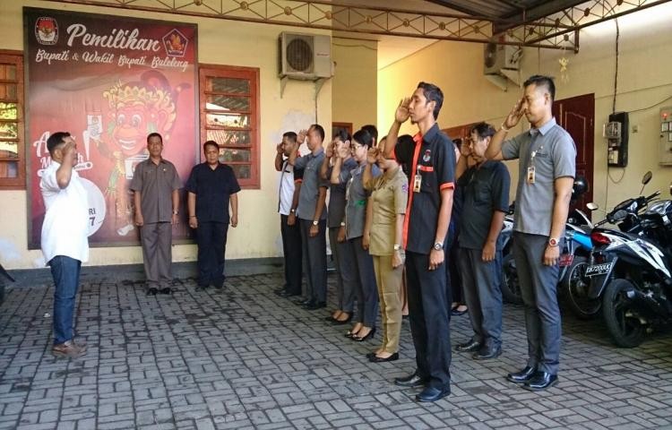 Untuk meningkatkan disiplin dan kinerja KPU Buleleng akan membudayakan apel pagi pada hari senin di setiap minggunya. Hal ini sesuai dengan perintah KPU RI. Apel pagi pada Senin (27/2/2017) ini dilakukan di halaman KPU Buleleng dengan Komisioner KPU Buleleng Divisi SDM sebagai inspiktur Apel Senin Himbauan untuk melaksanakan apel pagi sudah ada sebelum adanya surat edaran KPU No 1 Tahun 2017. Tetapi pelaksanaanya sempat terhambat karena padatnya kegiatan pada tahapan Pilkada Buleleng 2017. Gede Sutrawan sebagai inspiktur apel pagi menyampaikan agar KPU Buleleng membudayakan apel pagi ini guna meningkatkan disiplin dan kinerja pegawai di lingkungan KPU dan Sekretariat KPU Kabupaten Buleleng. Sehingga kebijakan yang akan disampaikan dapat segera dipahami dan dilaksanakan. Sutrawan juga menyampaikan bahwa setelah Pilkada Buleleng 2017, masih banyak tugas yang harus segera diselesaikan mulai dari rencana riset partisipasi masyarakat pada Pilkada Buleleng 2017 maupun dalam hal pelaporan kinerja yang diharapkan dapat terselesaiakan dengan tepat waktu. (roe)