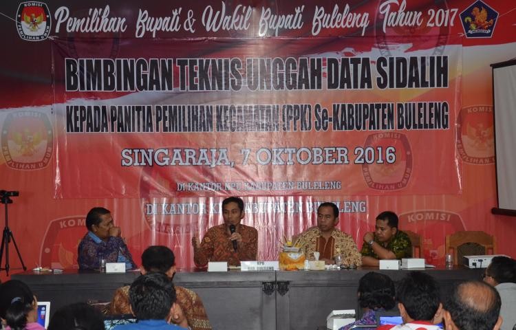 Menjelang pelaksanaan tahapan verifikasi perbaikan syarat dukungan calon perseorangan Pilkada Buleleng tahun 2017 yang akan berlangsung selama enam hari dari tanggal 12 s/d 17 Oktober 2016, KPU Buleleng menggelar rapat koordinasi terpadu bersama Kapolres Buleleng dan Panwaslih Kabupaten Buleleng, Sabtu (8/10/2016) di Hotel Melka Excelsior Singaraja.