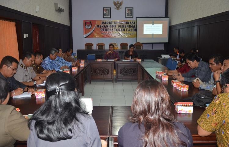 Berdasarkan Peraturan Komisi Pemilihan Umum (PKPU) Nomor 9 Tahun 2016, teknis pendaftaran pasangan calo ditetapkan dimulai jam 08.00-16.00 untuk hari pertama dan kedua (21-22 September 2016), dan jam 08.00-24.00 untuk hari terakhir (23 September 2016). Terkait hal ini, KPU Kabupaten Buleleng mengundang segenap instansi terkait untuk rapat koordinasi terkait mekanisme penerimaan pendaftaran calon dalam Pemilihan Bupati dan Wakil Bupati (Pilkada) Buleleng Tahun 2017. Instansi terkait yang diundang antara lain Dinas Pendidikan Kabupaten Buleleng, Kejaksaan Negeri Buleleng, Pengadilan Negeri Buleleng, Kepolisian Resort Buleleng, Panwaslih dan juga KPU Kabupaten/Kota se Bali. Dalam pemaparannya Ketua KPU Buleleng, Gede Suardana meminta masukan terkait mekanisme penerimaan pendaftaran tersebut, seperti pemeriksaan keabsahan ijazah dan juga pengurusan Surat Keterangan Catatan Kepolisian (SKCK). “Kami mohon masukannya terkait penelitian keabsahan ijazah, dan juga teknis pengurusan SKCK,” kata Gede Suardana saat Rakor Mekanisme Penerimaan Pendaftaran Calon, Senin (19/6/2016). Kepala Dinas Pendidikan Kabupaten Buleleng, Gede Suyasa yang berkesempatan hadir menyampaikan, bahwa akan mengikuti prosedur pemeriksaan keabsahan ijazah sesuai peraturan Menteri Pendidikan dan siap melakukan koordinasi dengan KPU Buleleng. Kabag Ops Polres Buleleng, Kompol Made Joni Antara Putra yang juga berkesempatan hadir mewakili Kapolres Buleleng, menyampaikan pengurusan SKCK. (las)