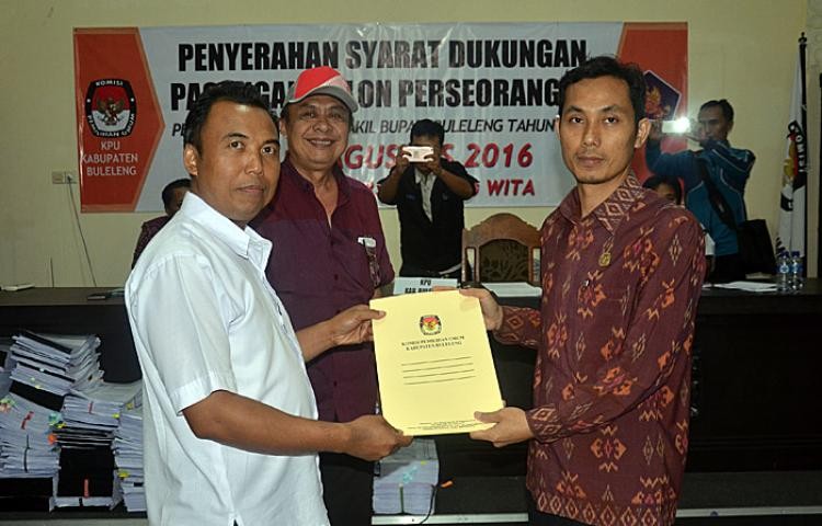 KPU Kabupaten Buleleng melakukan Verifikasi administrasi dan analisis kegandaan pada berkas dukungan Bakal Pasangan Calon dari jalur perseorangan, I Dewa Nyoman Sukrawan – I Gede Dharma Wijaya. Tahapan ini dilakukan KPU dengan melibatkan PPK se-Kabupaten Buleleng yang di wilayahnya terdapat sebaran dukungan calon perseorangan. “Kita libatkan teman-teman di PPK karena ketentuan mengijinkan demikian, bahwa proses verifikasi dapat dibantu oleh PPK,” demikian kata Gede Suardana memulai kegiatan verifikasi administrasi ini di Kantor KPU Buleleng, Jumat (12/8/2016) Verifikasi administrasi ini adalah tahap mencocokkan antara nama yang tercantum di formulir B1.KWK Perseorangan dengan dokumen pendukungnya, baik yang di softcopy maupun hardcopynya. Hal ini dilakukan setelah pasangan ini dinyatakan memenuhi syarat minimal dukungan dari yang ditetapkan KPU Kabupaten Buleleng yaitu 40.283, dengan menyerahkan syarat dukungan sebanyak 45.397. Prosesnya sesuai tahapan dilaksanakan selama delapan hari, terhitung mulai tanggal 12 sampai dengan 20 Agustus 2016, disaksikan oleh Tim dari Bakal Pasangan Calon Perseorangan dan Tim dari Panwaslih bertempat di Kantor KPU Kabupaten Buleleng. “Untuk pelaksanaan kegiatan ini kami minta agar disaksikan oleh Tim Bakal Pasangan Calon Perseorangan dan juga Tim dari Panwaslih Kabupaten Buleleng,” kata Nyoman Gede Cakra Budaya. Selanjutnya, berkas dukungan hasil verifikasi administrasi ini diturunkan kepada PPS melalui PPK untuk dilaksanakan proses verifikasi faktual pada periode 24 Agustus sampai dengan 6 September 2016. (ike)